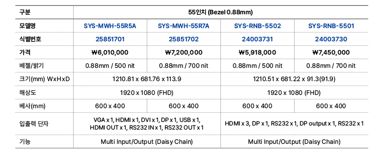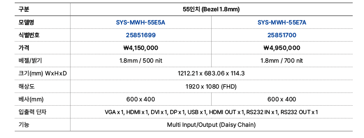 55인치, 1.8mm, 500nit
