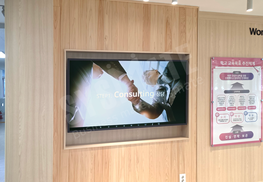 65인치 싱글사이니지 SYS-W-650M 2대를 설치했습니다.