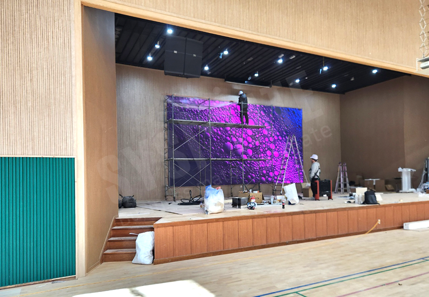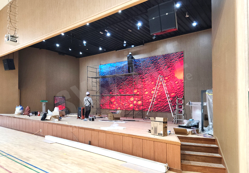 체육관 LED스크린에는 SMD 타입이 적용되어 넓은 시야각과 자연스러운 색감을 구현,