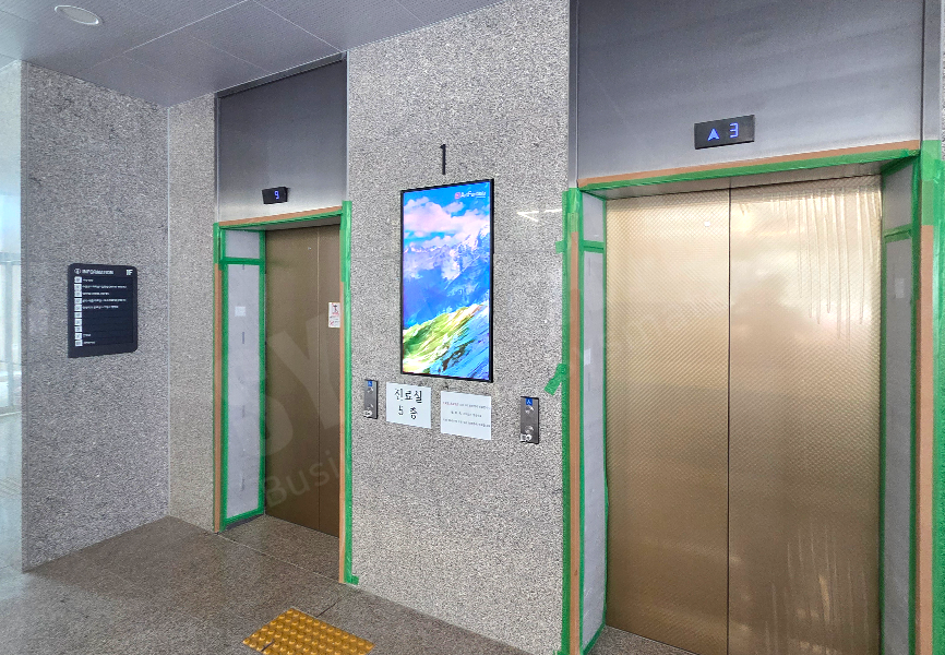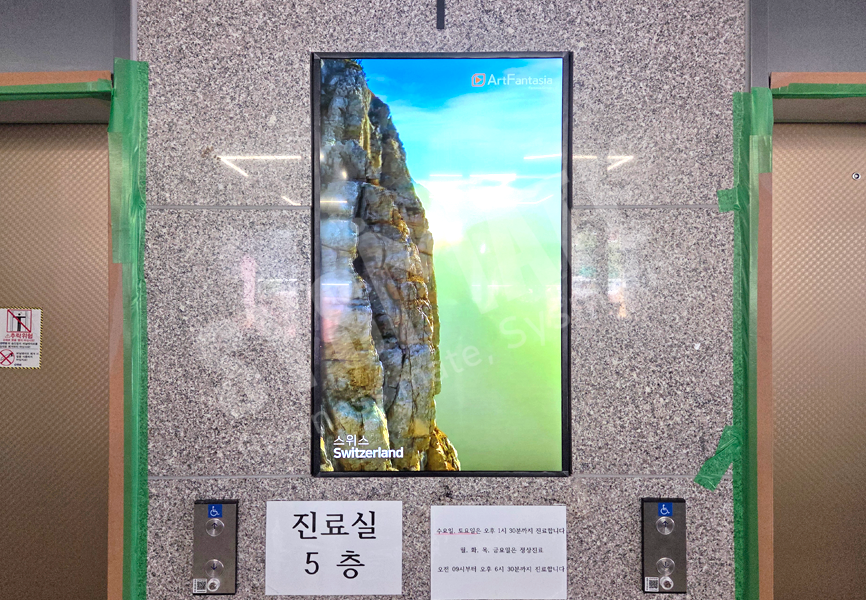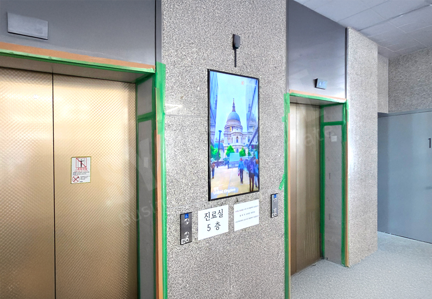 깔끔한 세로매립 방식으로 시공되어 진료 안내, 병원 홍보, 캠페인 영상 등