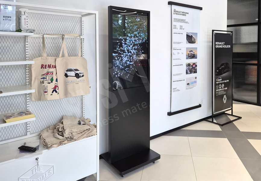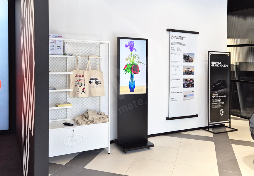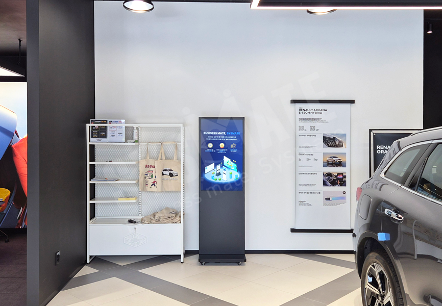 르노자동차 브랜드 아이덴티티와 전시장 인테리어에 자연스럽게 어우러집니다.