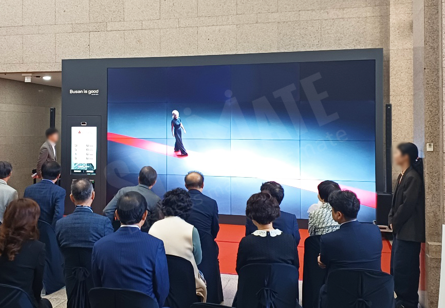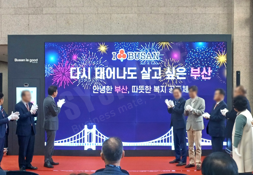 부산시청에 기부키오스크와 연동된 4단 4열 비디오월 시스템을 구축했습니다.