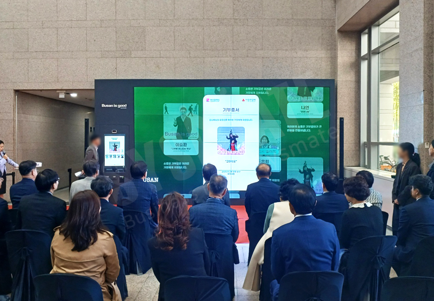 비디오월 옆에 함께 설치된 기부키오스크에서는