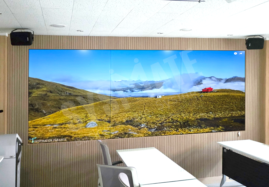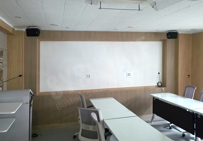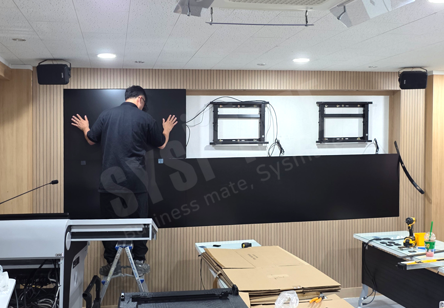 기존 칠판 자리에 2단 3열 멀티비전을 매립형으로 시공하여