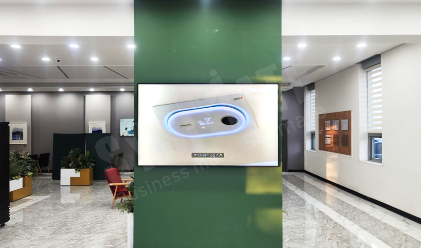 실내 인테리어와 자연스럽게 어우러지는 깔끔한 일체형 디스플레이 환경을 구현했습니다.