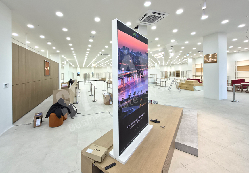 벽체 시공 없이도 활용 가능한 스탠드형 LED디스플레이로 구현했습니다.