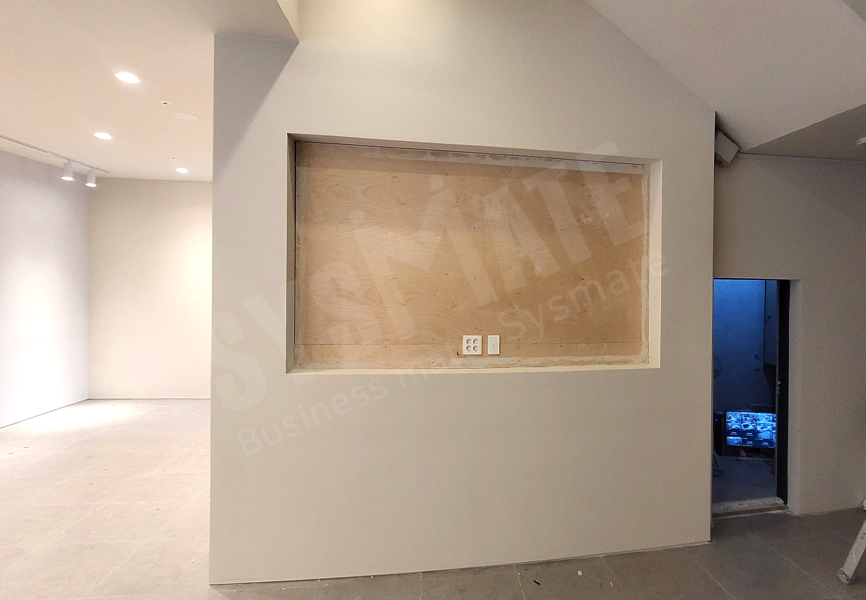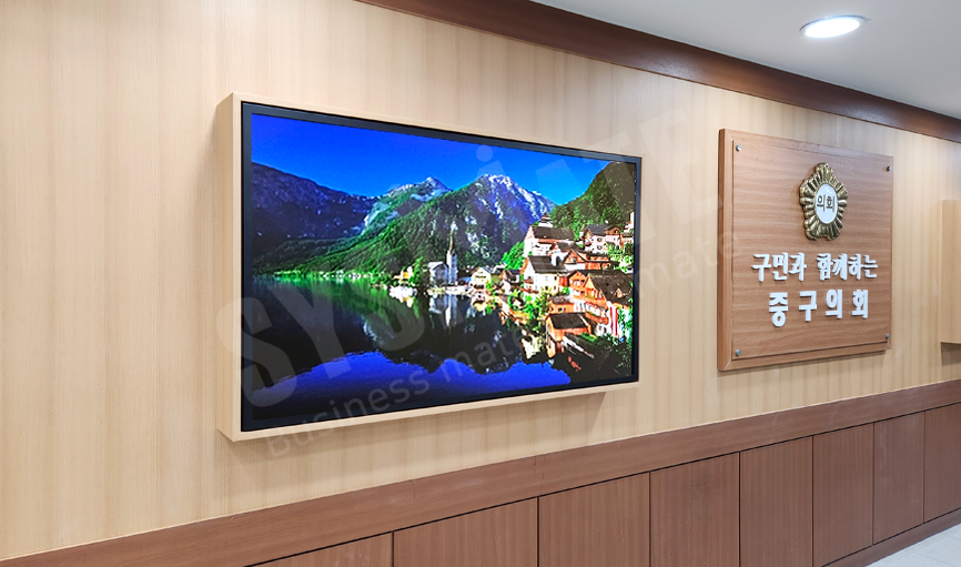 매장 공간과 자연스럽게 어우러지는 깔끔하고 정돈된 화면 구성을 완성했습니다.