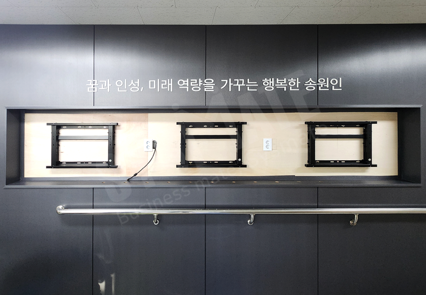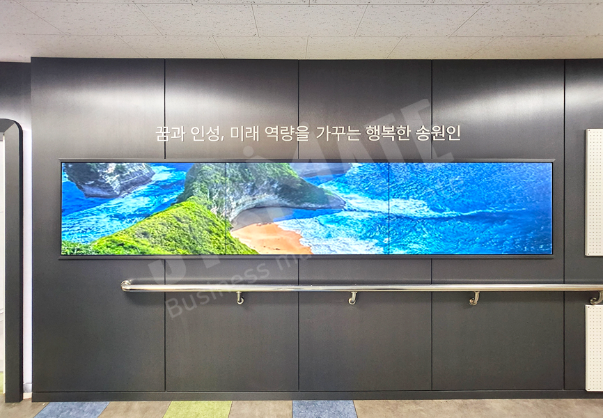 교내 복도 벽면에 깔끔한 매립형으로 시공하여 공지사항과 학사 일정, 행사 안내를