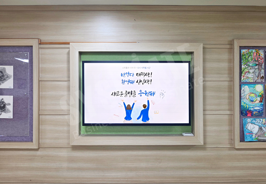 천안백석중학교에서는 복도 구조에 맞춰 가로 매립벽부형으로 시공해,