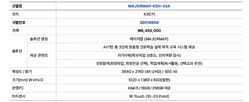 메이저맵 키오스크의 스마트한 진로탐색 과정을 통해 학생의 효과적인 맞춤형 진로설계를 경험해 보세요.
