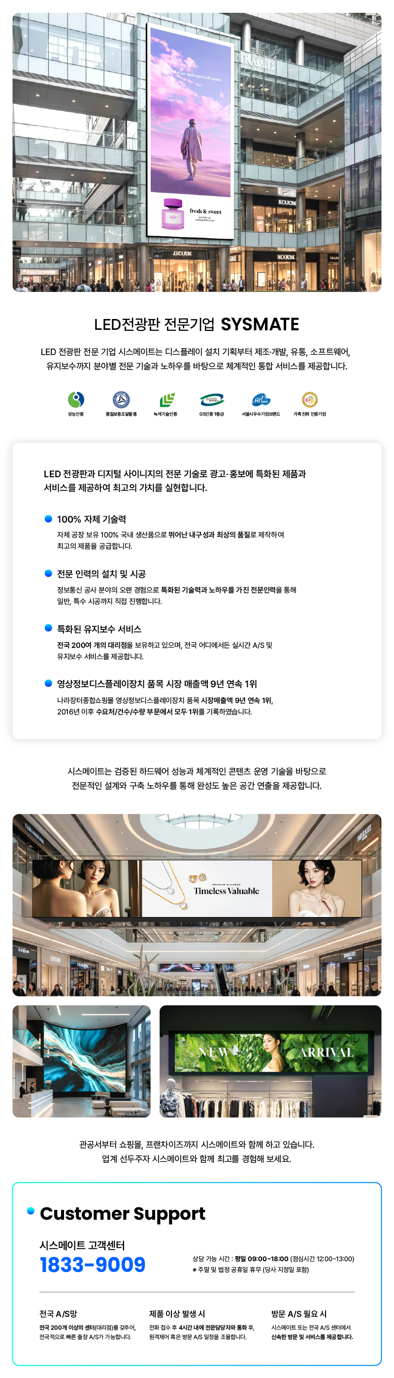 시스메이트의 LED디스플레이는 모듈 별 색감조정(Calibration) 기술로