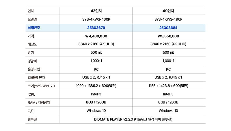 광고 · 홍보에 특화된 영상정보 디스플레이 제품으로 뛰어난 스펙과 내구성을 자랑합니다.