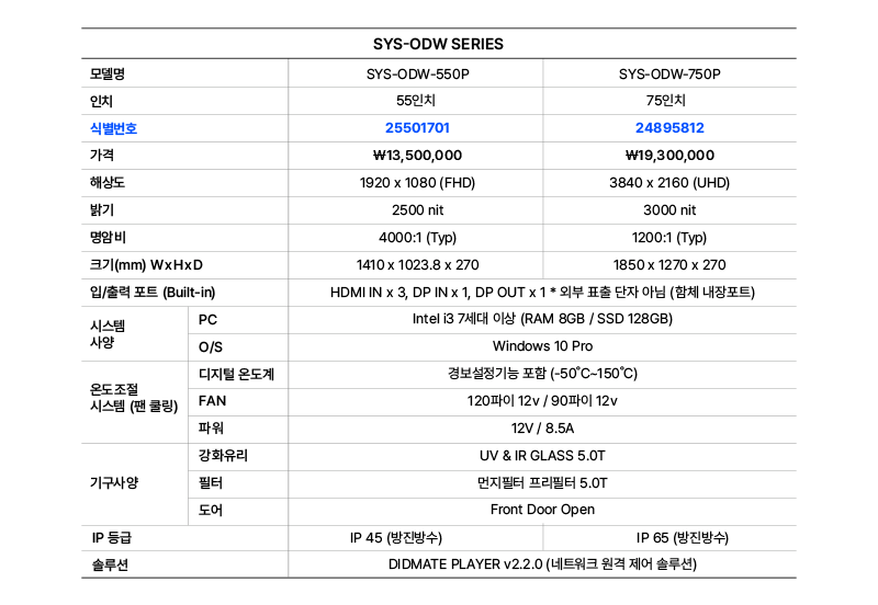 광고 · 홍보에 특화된 영상정보 디스플레이 제품으로 뛰어난 스펙과 내구성을 자랑합니다.