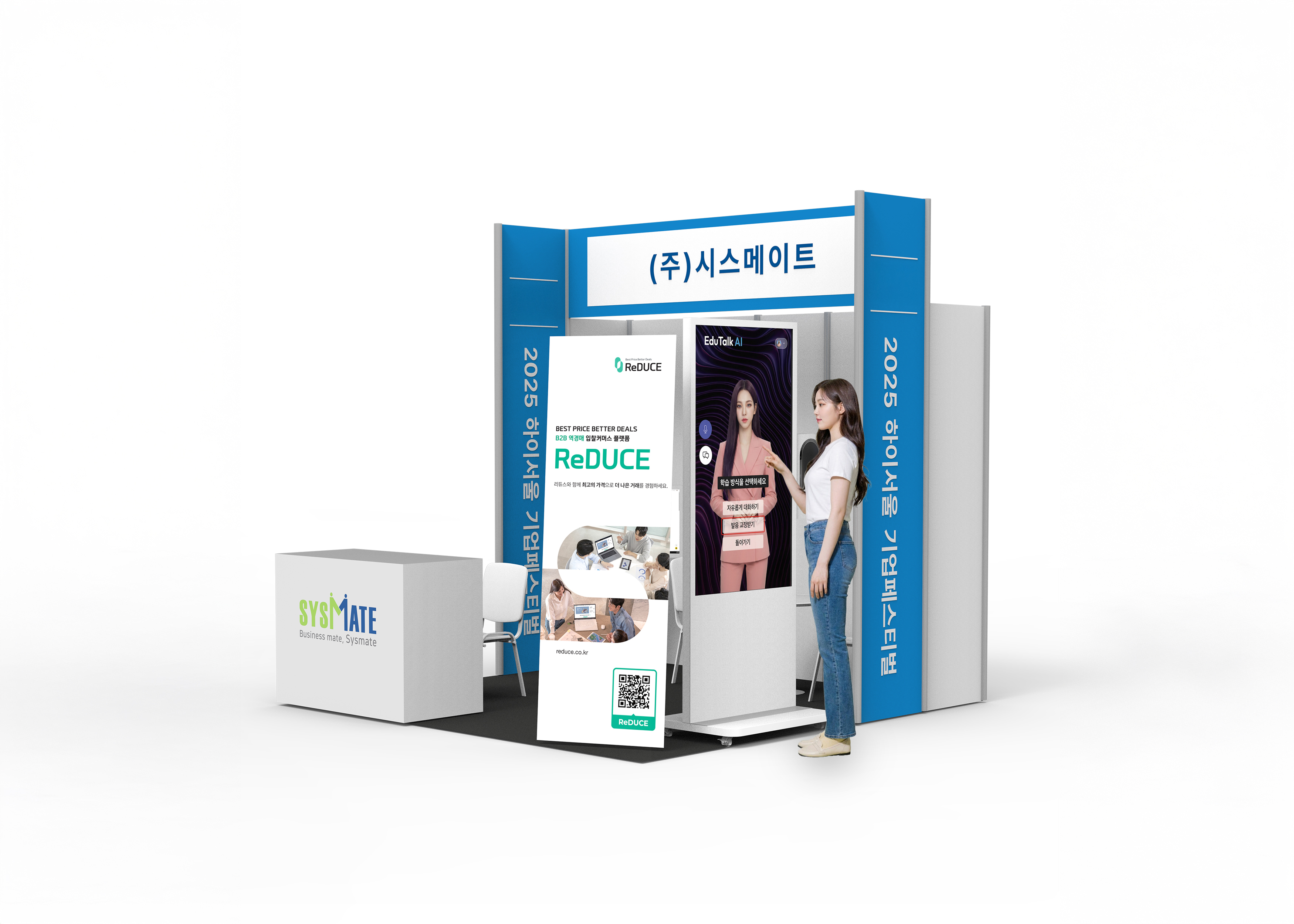 시스메이트는 이번 행사에서 실사형 아바타와 고도화된 음성인식 기술이 탑재된 AI키오스크와 올해 새롭게 런칭한 B2B 역경매 입찰 플랫폼 ‘리듀스(ReDUCE)’를 직접 소개한다.