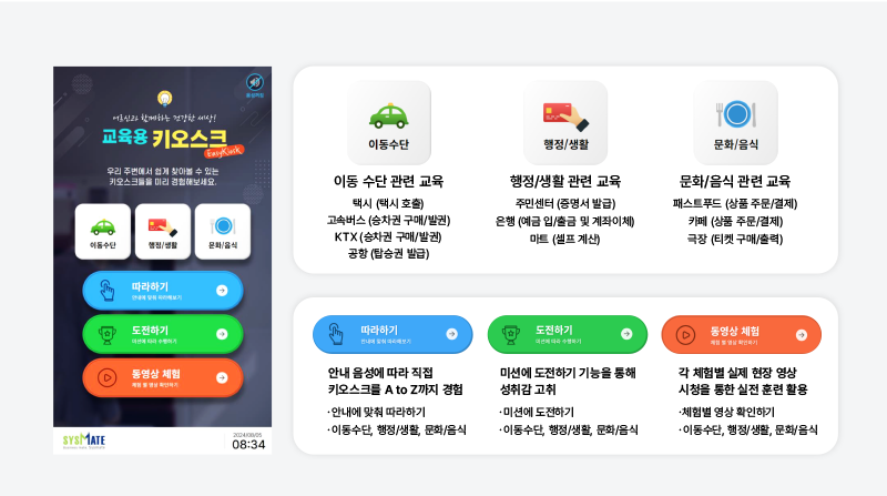 디지털 소외계층의 결제/민원발급 키오스크 교육 체험을 제공하는 시스템입니다.
