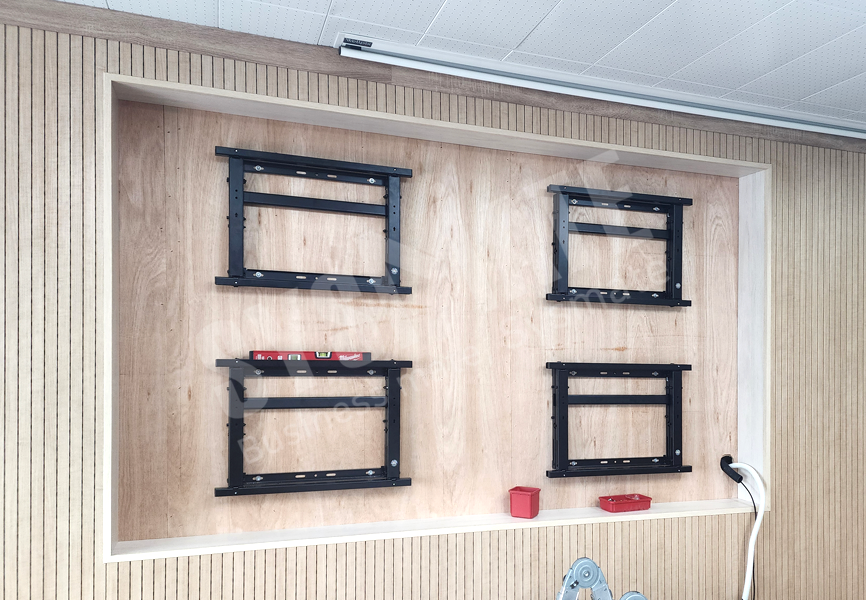 2단 2열 구성의 매립형 비디오월로 시공되어, 공간과 조화를 이루는 깔끔한 디지털 환경을 구현했습니다.