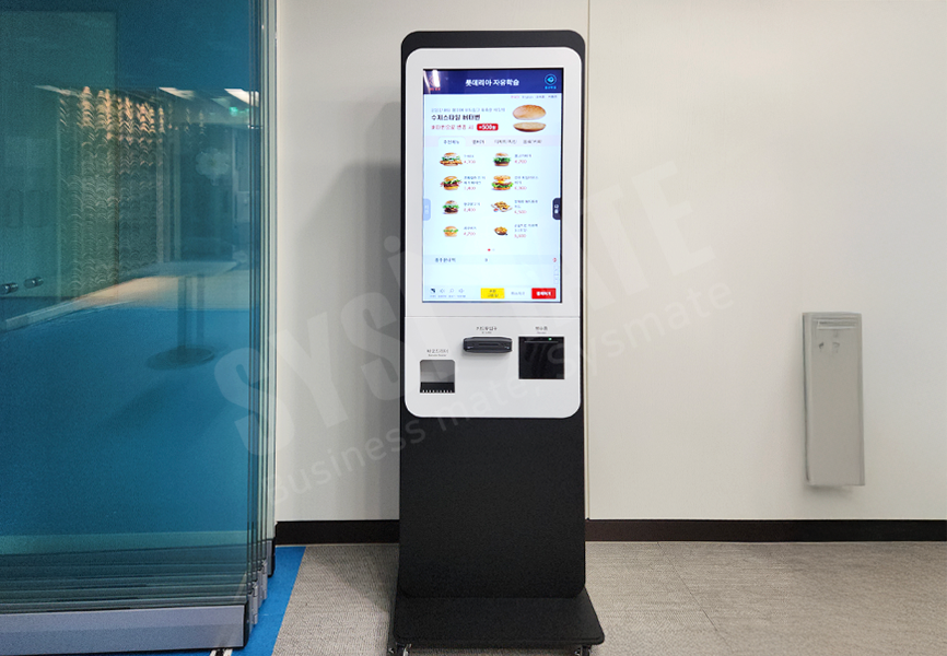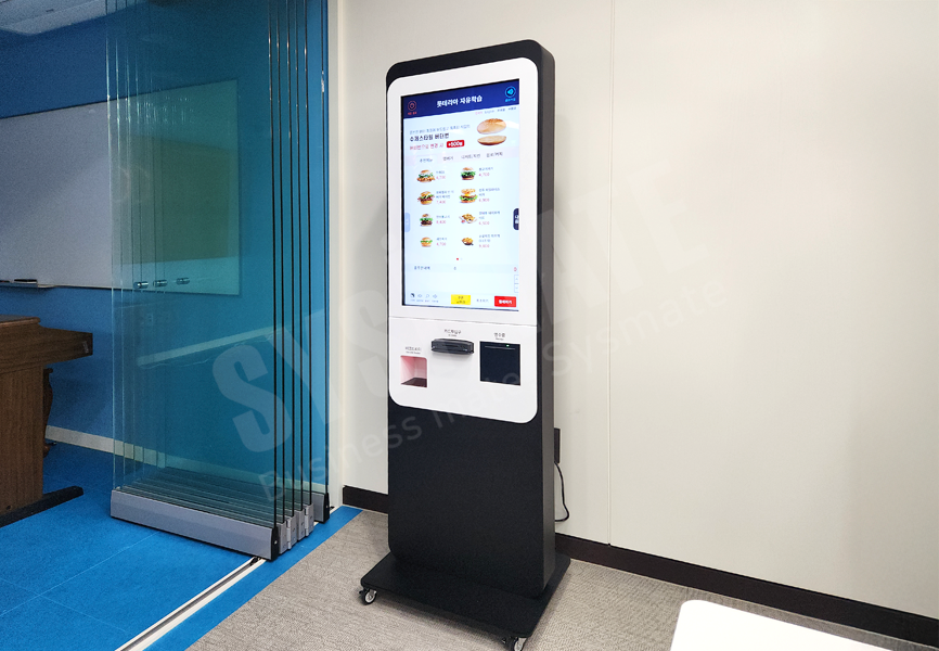 본 제품은 PC 내장형 터치 키오스크로, 실제 현장에서 운영되는 무인결제 키오스크와