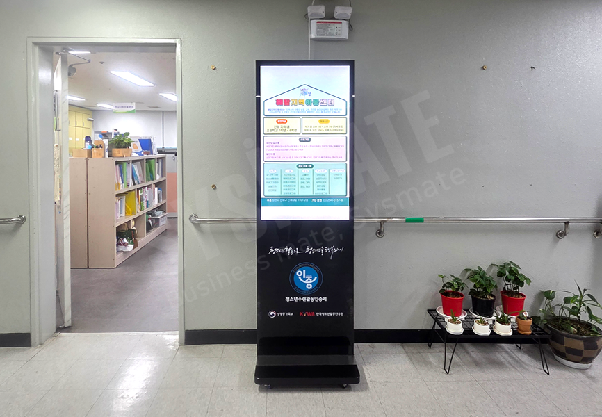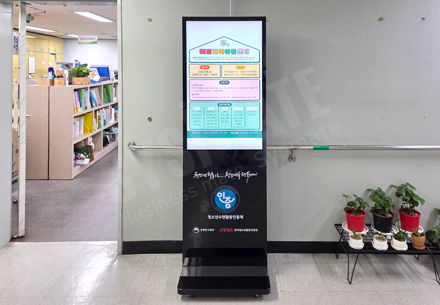 청소년 수련관 프로그램 안내 등 다양한 정보를 전달하는 스탠드형 사이니지