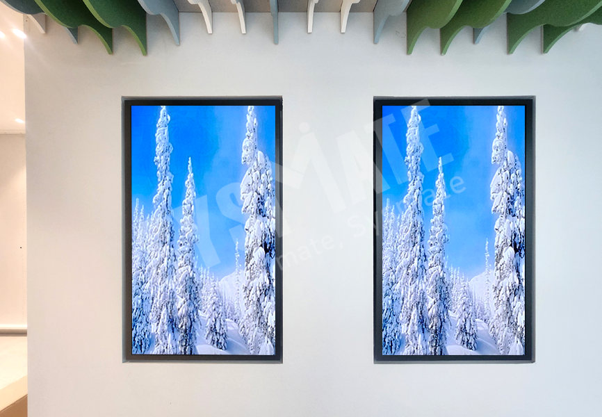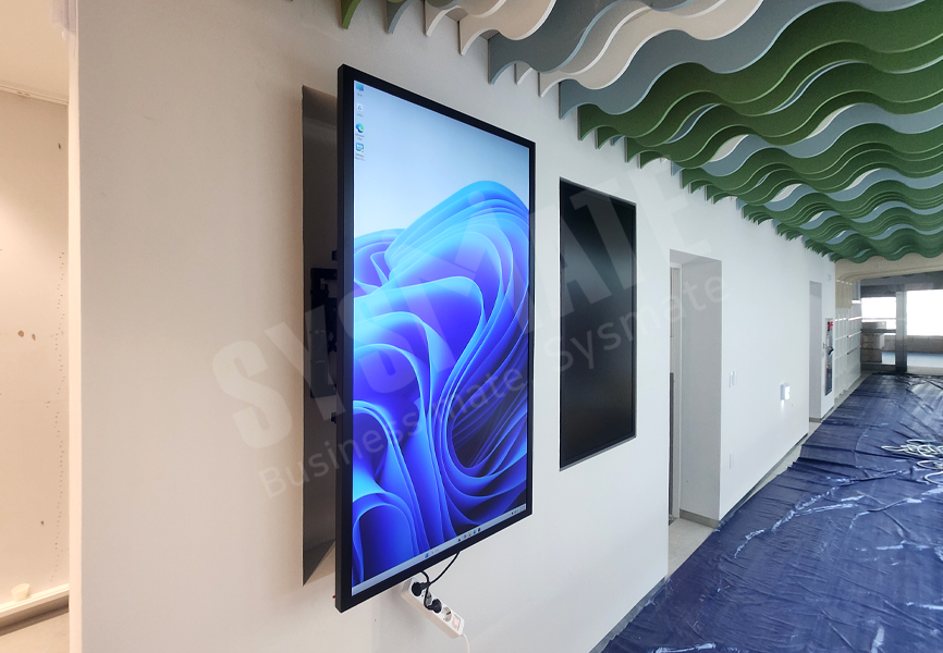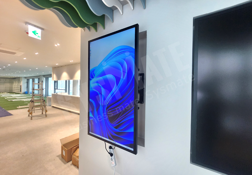 세로 매립형 벽부 방식으로 55인치 디스플레이 2대를 나란히 구성해