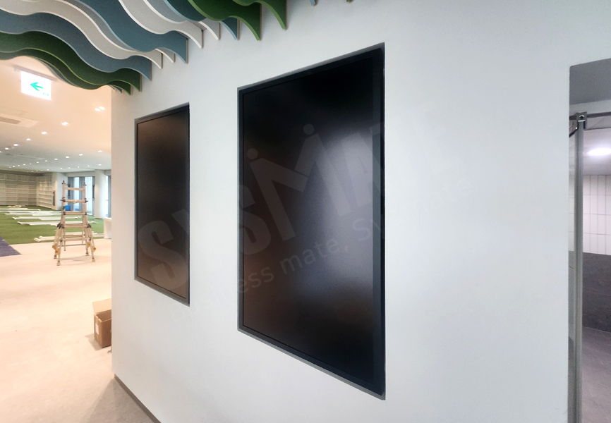 앞면 프레임이 드러나지 않는 매립형 시공으로 공간과 자연스럽게 이어지며