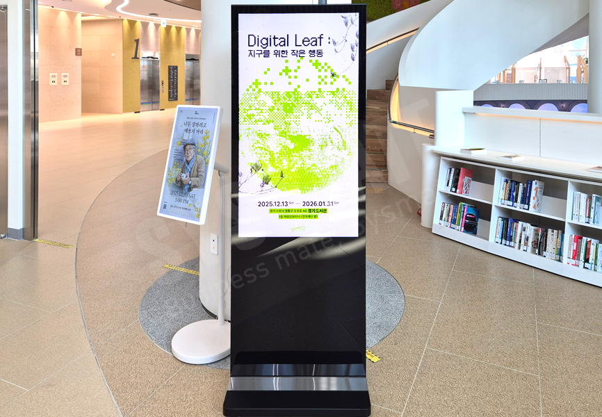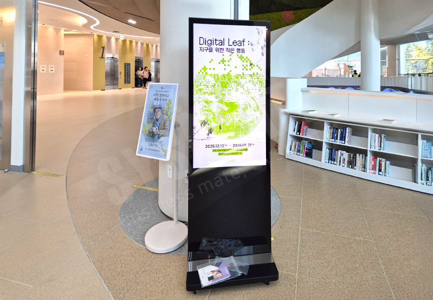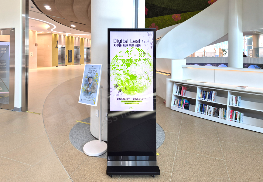 도서관 안내, 행사 일정 등 홍보용 콘텐츠를 송출하는 이동식 사이니지