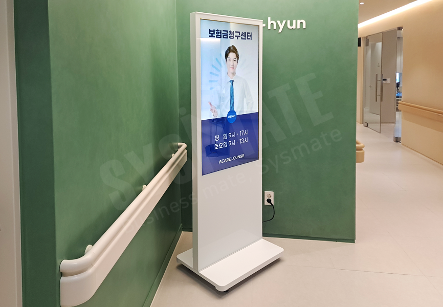 구미이현한방병원에 설치된 제품은 50인치 QBS 스탠드사이니지로,