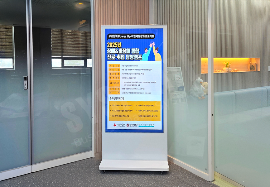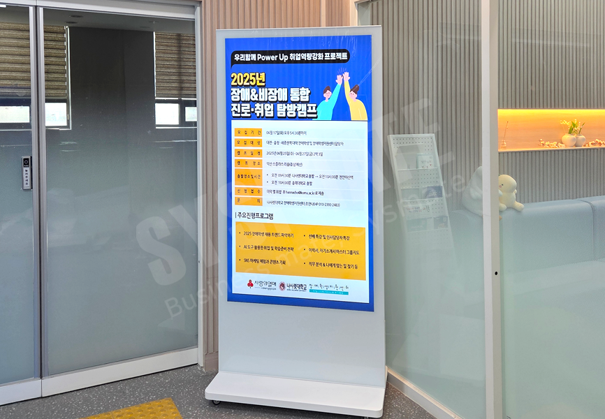 교내 학사 안내, 행사 공지, 홍보 콘텐츠 등을 통합 표출하는 안내용 스탠드사이니지