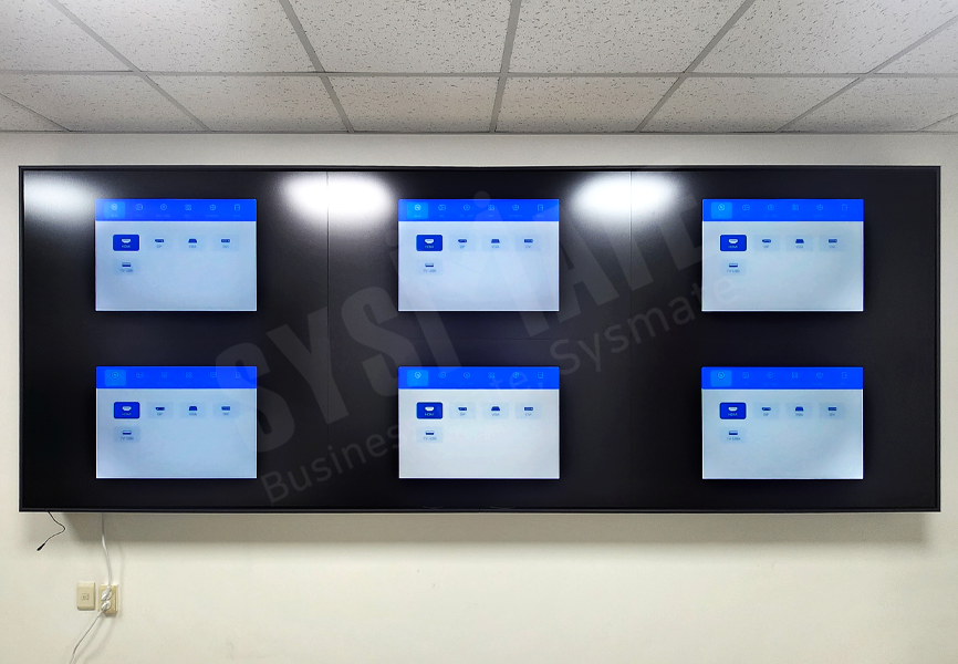 55인치 디스플레이 6대를 2단 3열 멀티스크린 형태로 구성한 대형 화면 시스템으로