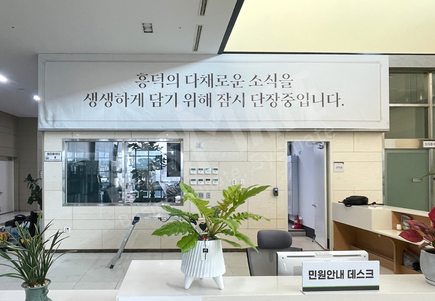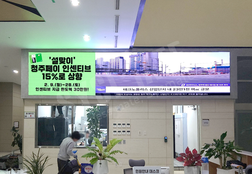 방문 민원인이 가장 먼저 마주하는 안내데스크 위치에 LED전자현수막 형태로 구성하여