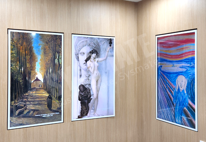 단순한 장식이 아닌 ‘전시 공간’의 분위기를 구현했습니다.