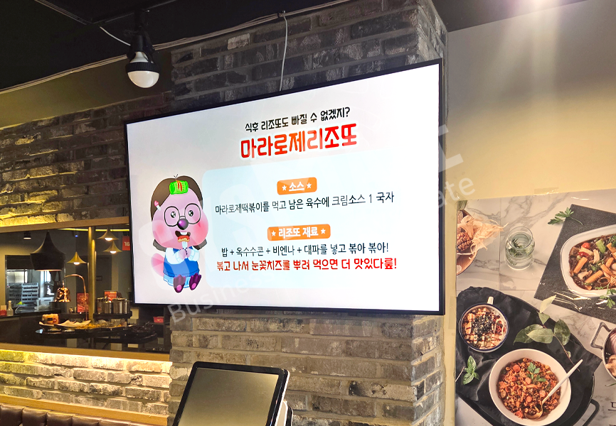 프로모션 영상과 추천 레시피, 신메뉴 홍보 콘텐츠를 실시간으로 송출하는 DID모니터