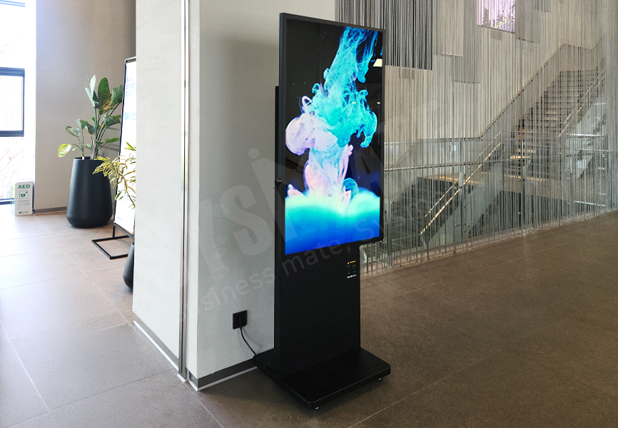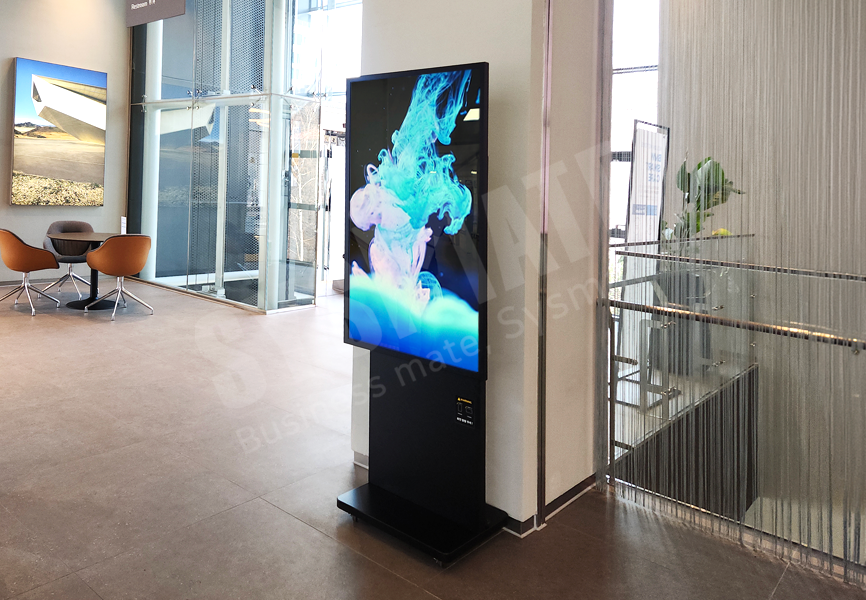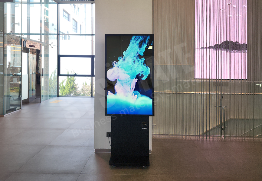 피벗 스탠드 사이니지는 가로·세로 자유로운 화면 전환이 가능한 회전형 구조가 특징입니다.