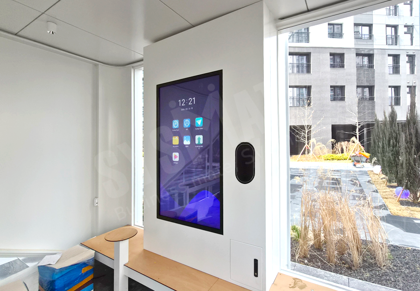 65인치 디스플레이를 별도 제작 함체에 매립형으로 시공해