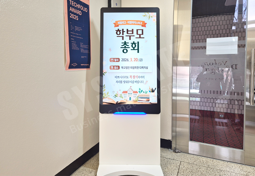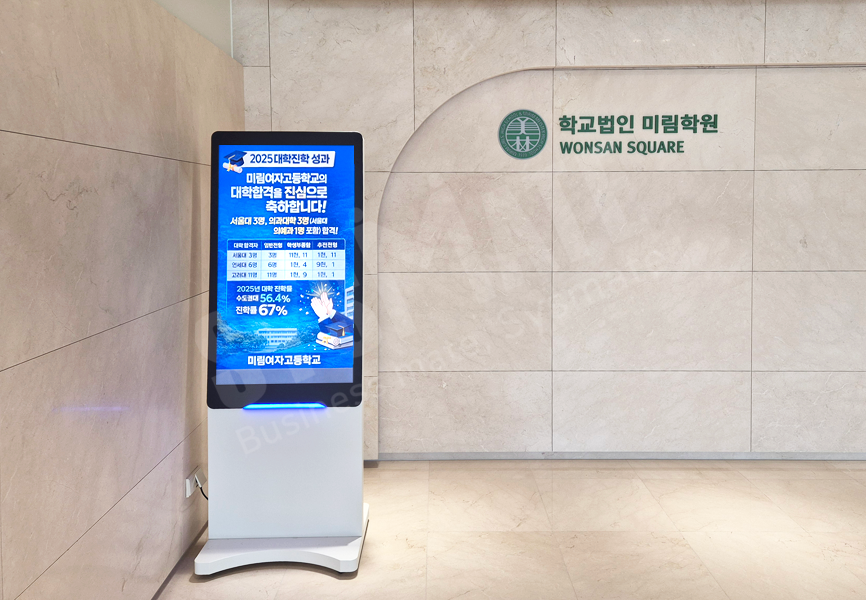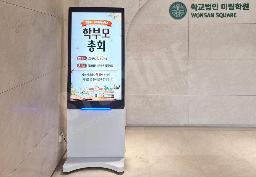 공지사항, 행사 안내, 진로·교육 정보 등을 전달하는 하이엔드 스탠드DID