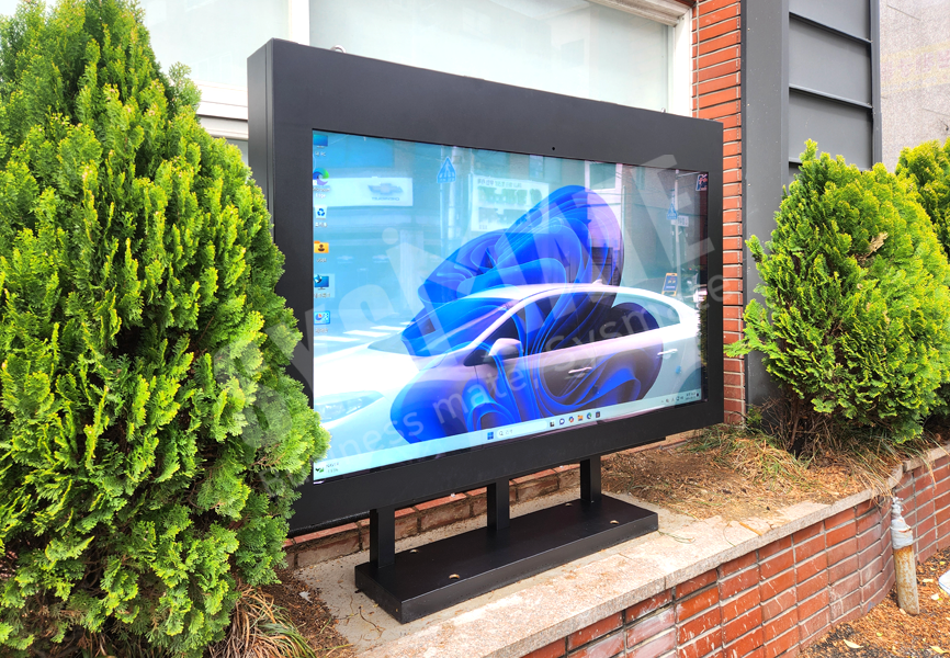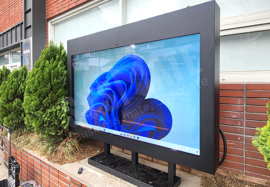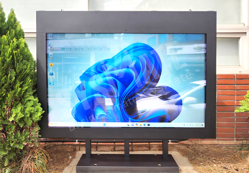 부산 명장2동 주민센터 입구에 75인치 아웃도어 사이니지를 설치했습니다.